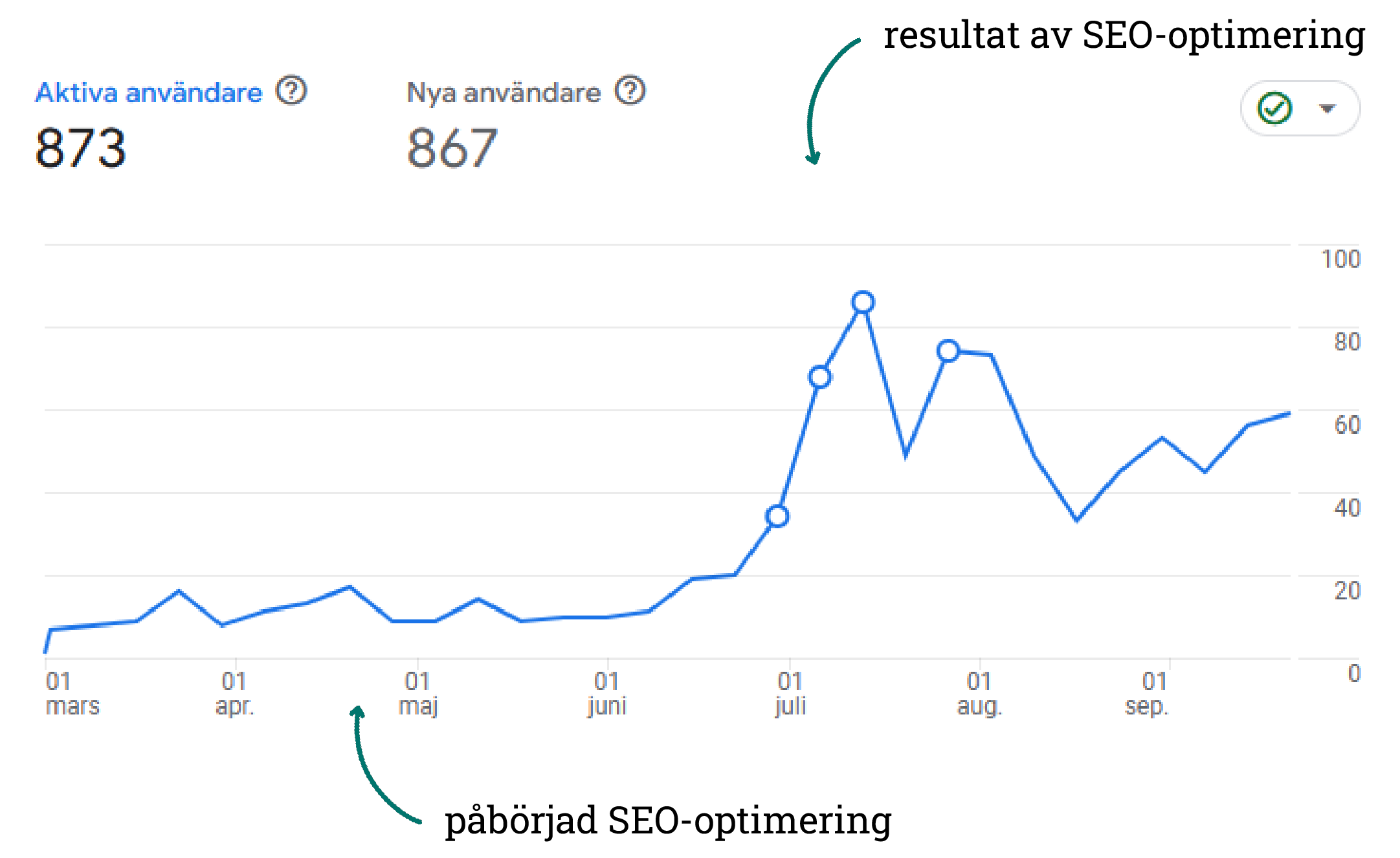 Till en början användes bloggen endast för att lägga upp bilder och beskrivningar för att kunna dela med mig till familj och vänner, men under den senaste tiden har jag lagt mycket fokus på att driva trafik genom organisk SEO. Detta främst genom turbeskrivningarna men även SEO-optimerade artiklar om olika vandringsområden eller allmäna tips om vandring, se fjelltur.se/grovelsjon och fjelltur.se/vandring-i-september (öppnas i nytt fönster).